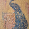 При желании можно нанести детальный трафарет третьим слоем и продублировать необходимые элементы более фактурно для выразительности. Посадить павлина можно на отдельный трафарет — колонну. ветку или просто создать ему достойное обрамление.